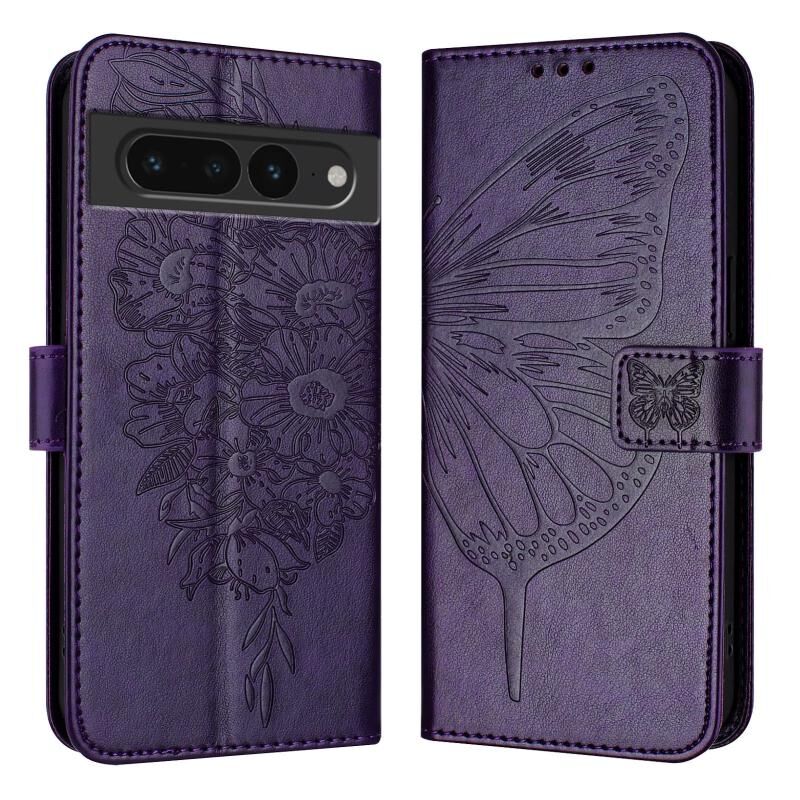 For Google Pixel 7 Pro Embossed Butterfly Leather Phone Case(Dark Purple)
