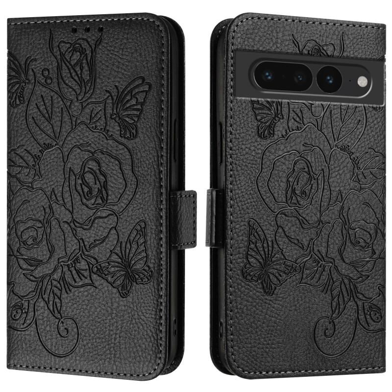 For Google Pixel 7 Pro Embossed Rose RFID Anti-theft Leather Phone Case(Black)