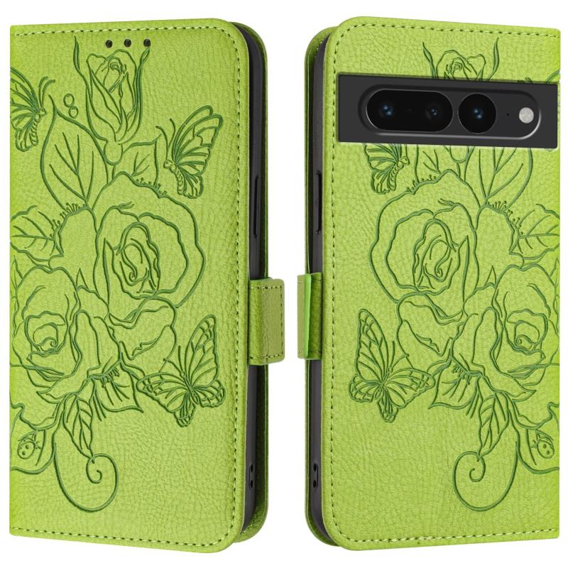 For Google Pixel 7 Pro Embossed Rose RFID Anti-theft Leather Phone Case(Green)