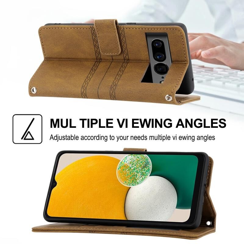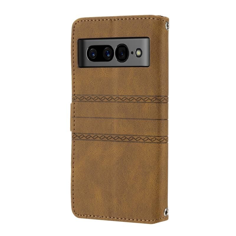 Για το Google Pixel 7 Pro ανάγλυφη ριγέ μαγνητική πόρπη οριζόντια Flip τηλέφωνο δερμάτινη θήκη (καφέ)