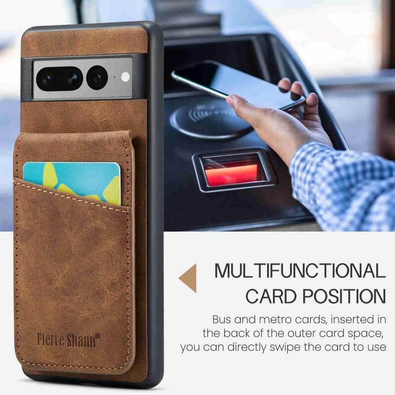 Για το Google Pixel 7 Pro Fierre Shann Crazy Horse Card Holder πίσω κάλυμμα PU υπόθεση τηλεφώνου (καφέ) (FIERRE SHANN)