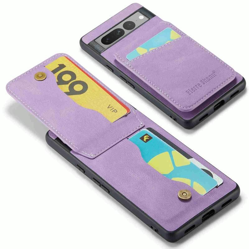 Για το Google Pixel 7 Pro Fierre Shann Crazy Horse Card Holder πίσω κάλυμμα PU υπόθεση τηλεφώνου (μωβ) (FIERRE SHANN)