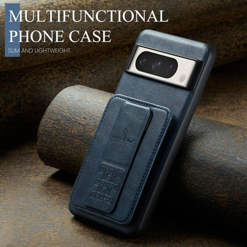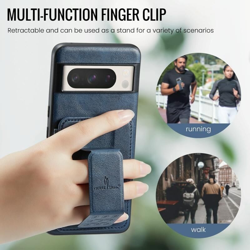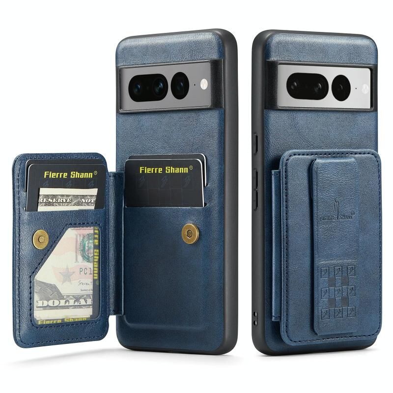 Για το Google Pixel 7 Pro Fierre Shann Oil Wax Cow Leather Card Holder Back Phone Case (Blue) (FIERRE SHANN)