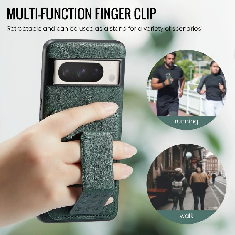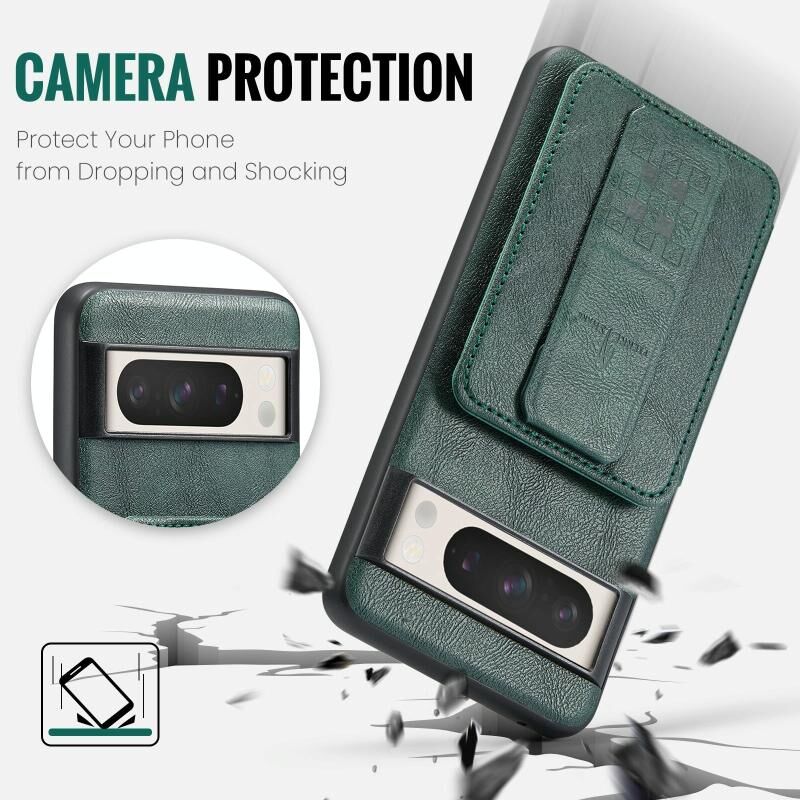 Για το Google Pixel 7 Pro Fierre Shann Oil Wax Cow Leather Card Holder Back Phone Case (Πράσινο) (FIERRE SHANN)