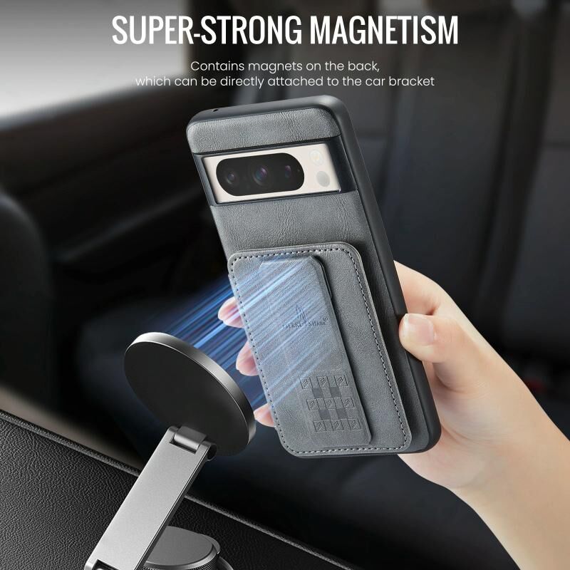 Για το Google Pixel 7 Pro Fierre Shann Oil Wax Cow Leather Card Holder Back Phone Case(Grey) (FIERRE SHANN)