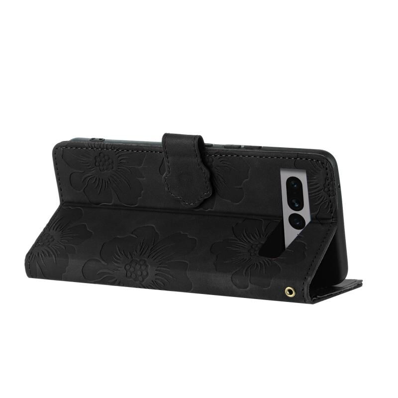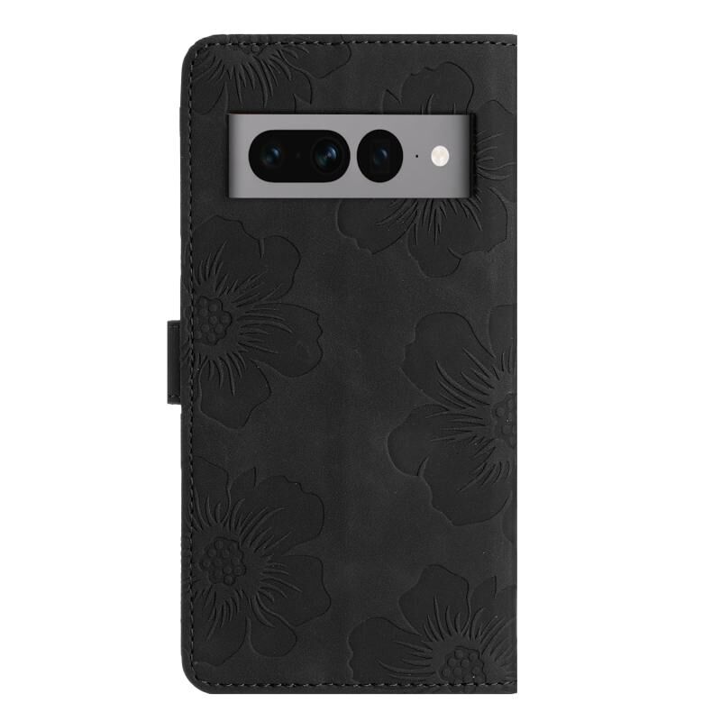 Για το Google Pixel 7 Pro λουλούδι ανάγλυφο μοτίβο δερμάτινη θήκη τηλεφώνου (μαύρο)