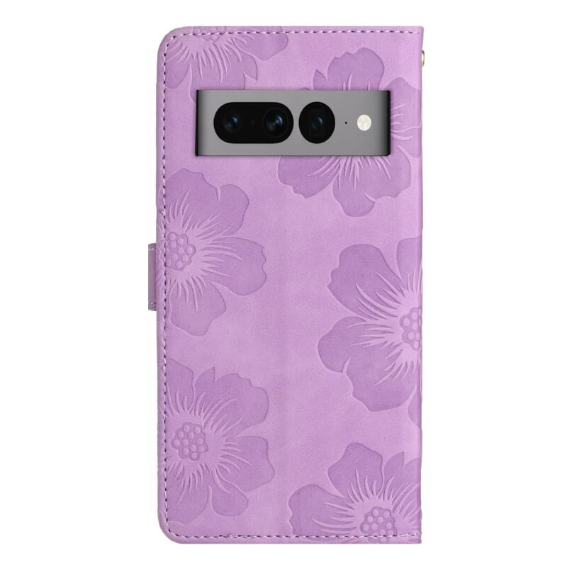 Για το Google Pixel 7 Pro λουλούδι ανάγλυφο μοτίβο δερμάτινη θήκη τηλεφώνου (μωβ)