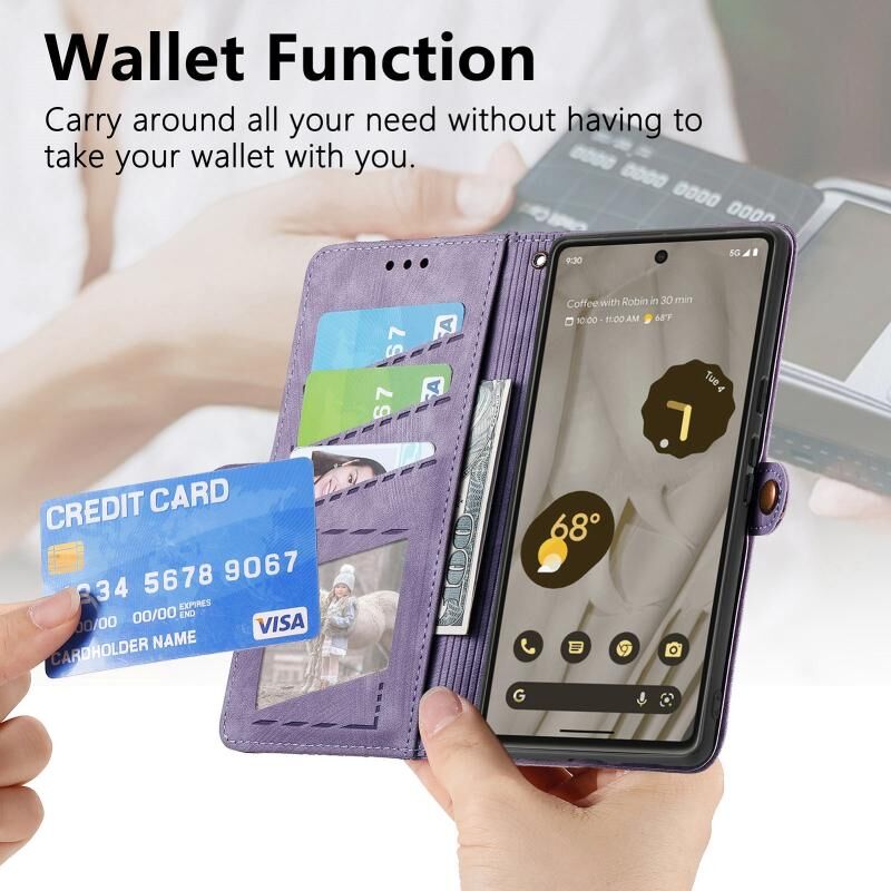Για Google Pixel 7 Pro Γεωμετρική φερμουάρ πορτοφόλι πλευρά πόρπη δερμάτινη θήκη τηλεφώνου (μωβ)