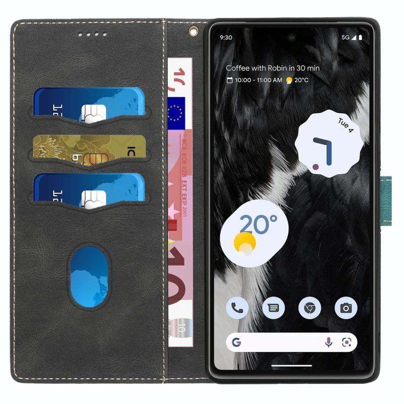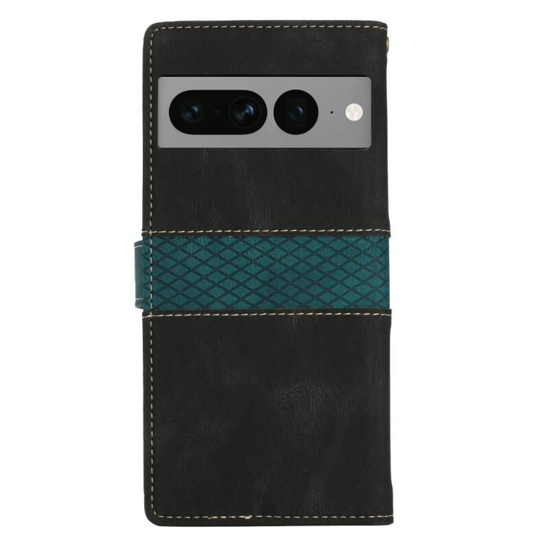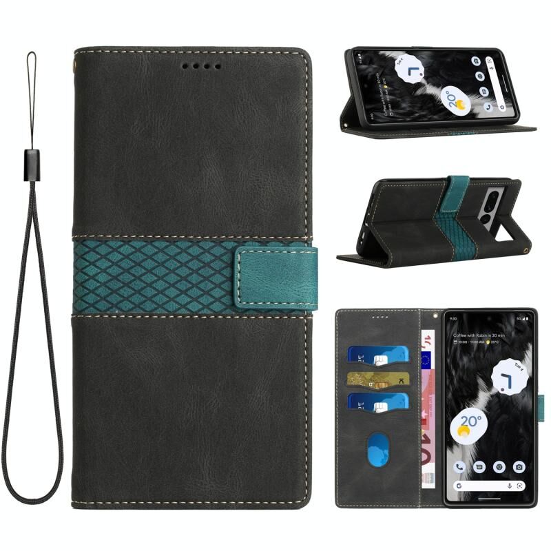 Για το Google Pixel 7 Pro Δερμάτινη θήκη τηλεφώνου με ραφή πλέγματος και κορδόνι (Μαύρο)