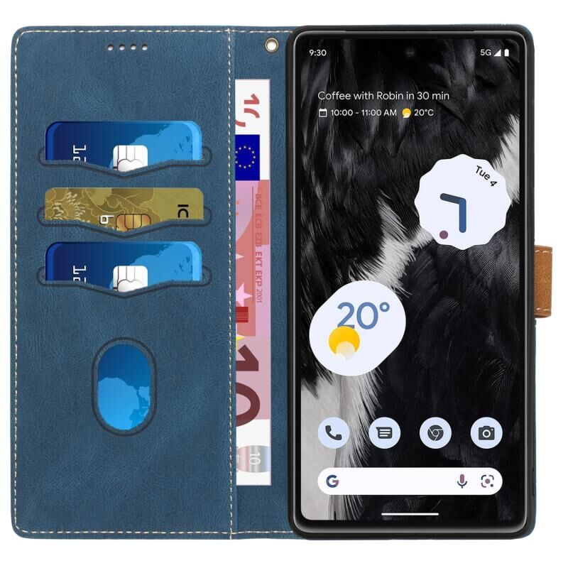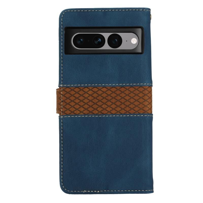 Για το Google Pixel 7 Pro Δερμάτινη θήκη τηλεφώνου με ραφή πλέγματος και κορδόνι (μπλε)