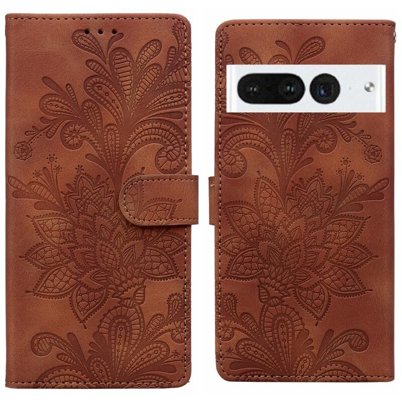 Θήκη τηλεφώνου Google Pixel 7 Pro με σχέδιο δαντέλας και λουλουδιών, μαγνητικό κούμπωμα και λουρί καρπού από PU (Πράσινο)