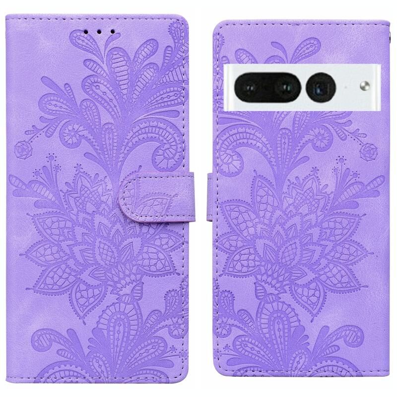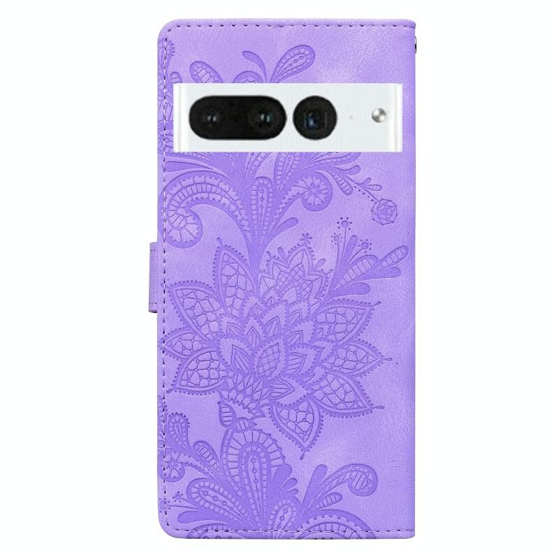 Θήκη τηλεφώνου Google Pixel 7 Pro με σχέδιο δαντέλας και λουλουδιών, μαγνητικό κούμπωμα και λουρί καρπού από PU (Πράσινο)