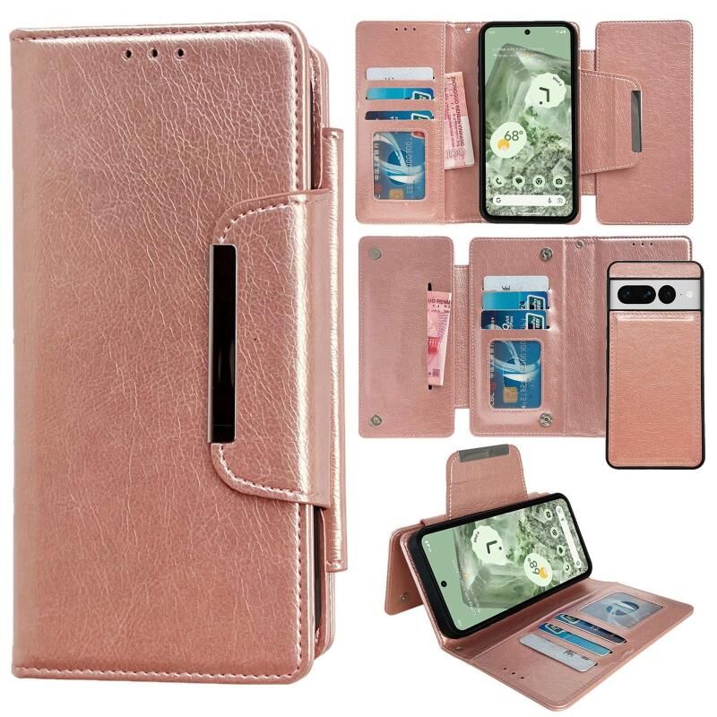 Θήκη τηλεφώνου από δέρμα, πολυλειτουργική θήκη πορτοφολιού 7 καρτών για Google Pixel 7 Pro (Χρυσό Ροζ)