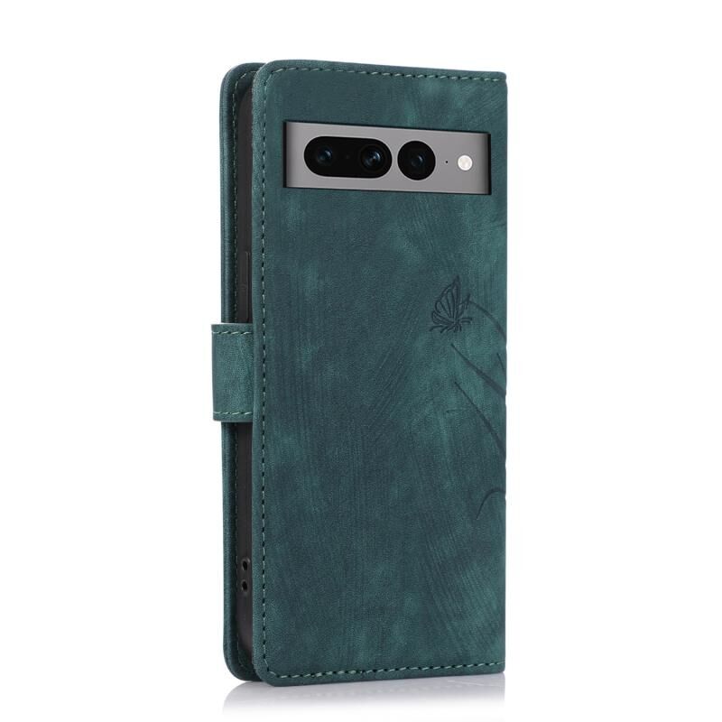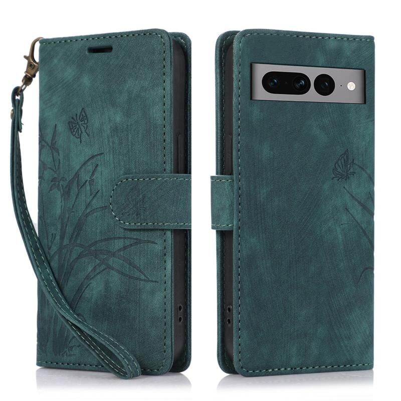 Θήκη τηλεφώνου από δέρμα με ανάγλυφο σχέδιο πεταλούδας ορχιδέας για Google Pixel 7 Pro (Πράσινο)