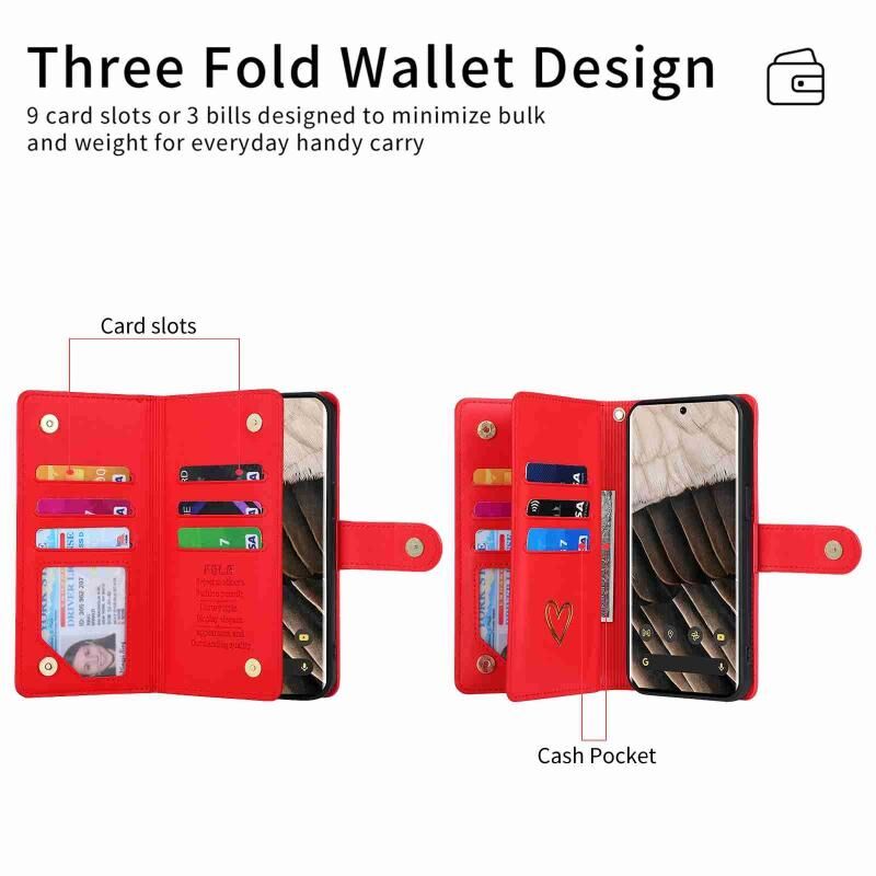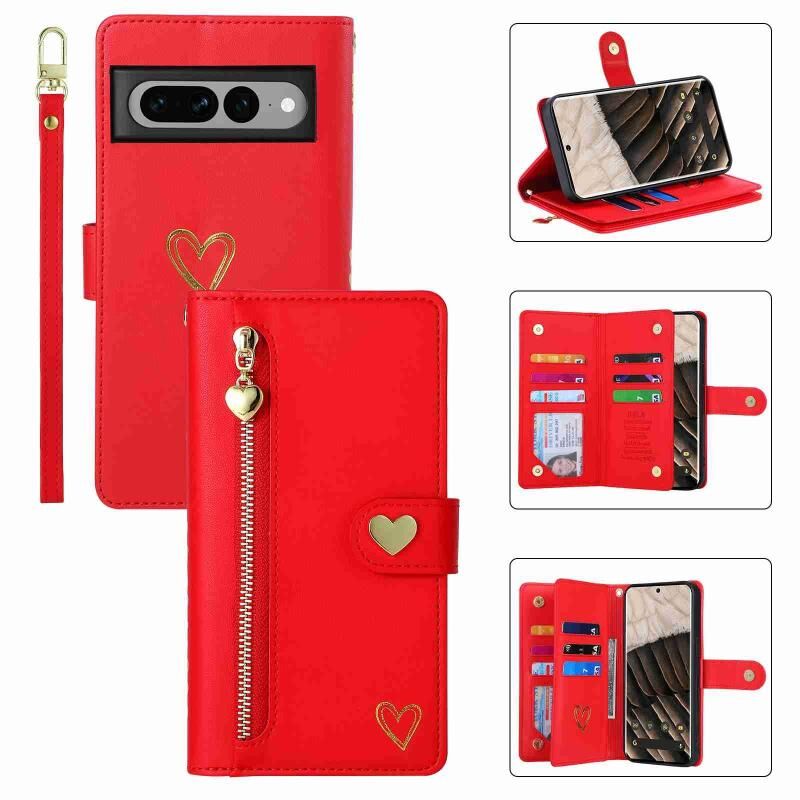 Για το Google Pixel 7 Pro POLA Love Multi-Card Slots φερμουάρ πορτοφόλι δερμάτινη θήκη τηλεφώνου (κόκκινο) (POLA)