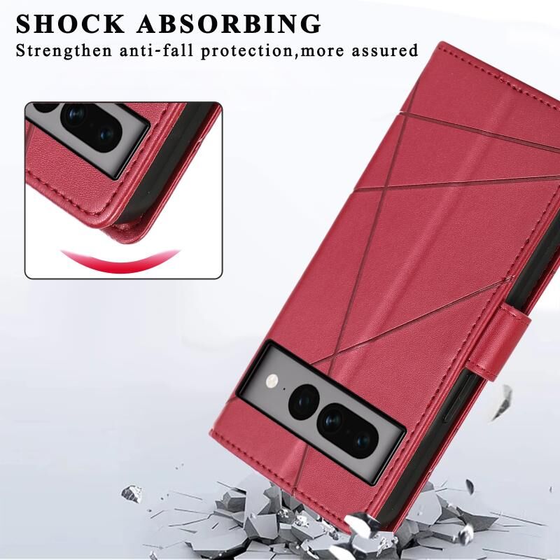 For Google Pixel 7 Pro PU Genuine Leather Texture Embossed Line Phone Case(Red)