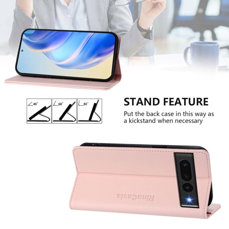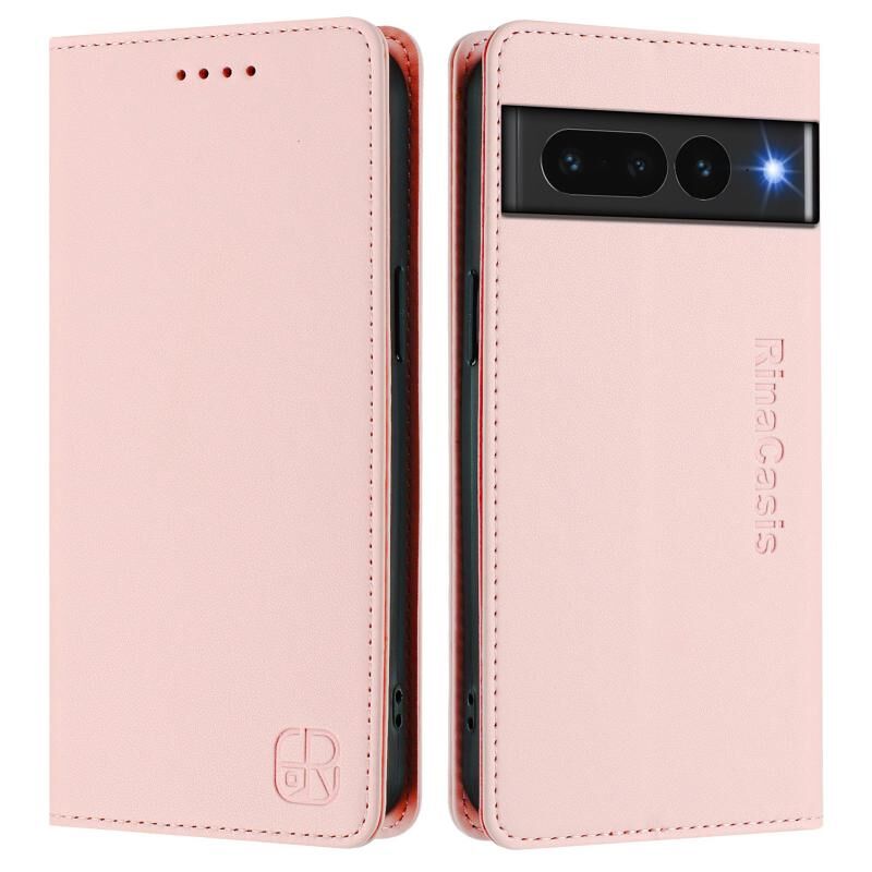 For Google Pixel 7 Pro RC01 Dual-Folded Magnetic Suction RFID Leather Phone Case(Pink)