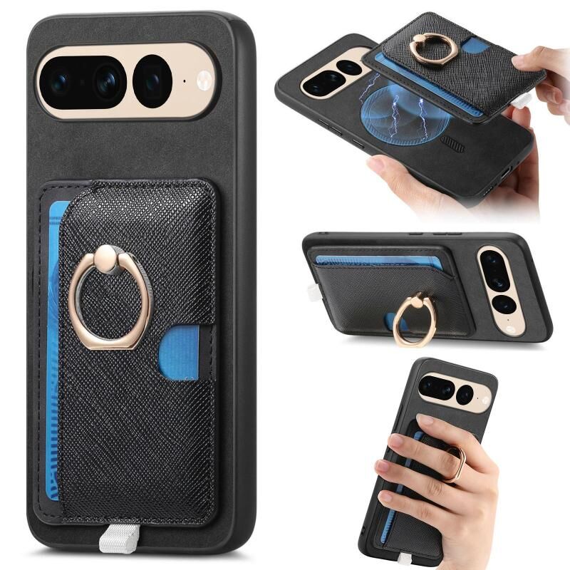 Θήκη τηλεφώνου Google Pixel 7 Pro Retro Cross Leather Ring Side Insert Card Bag MagSafe (Πράσινη)