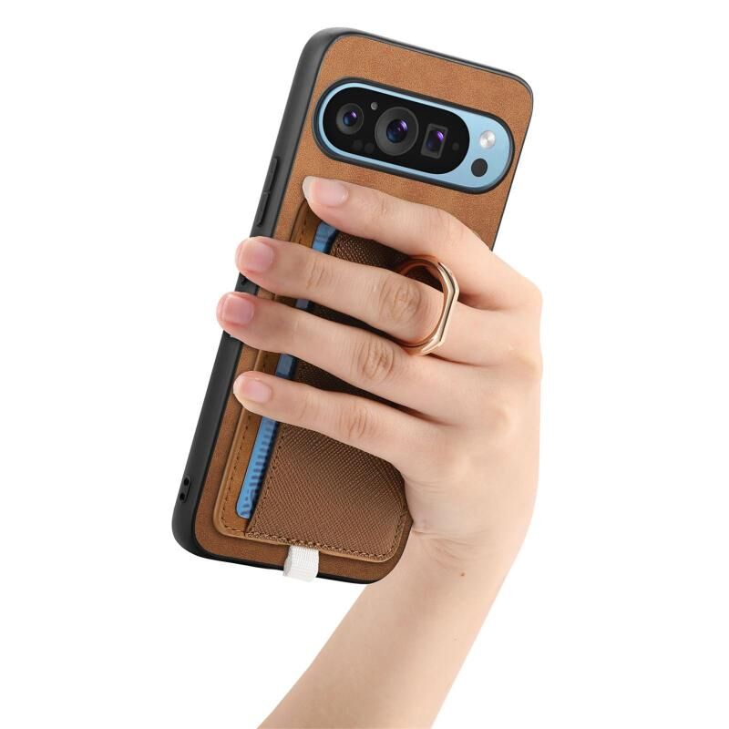 Θήκη τηλεφώνου Google Pixel 7 Pro Retro Cross Leather Ring Side Insert Card Bag MagSafe (Πράσινη)