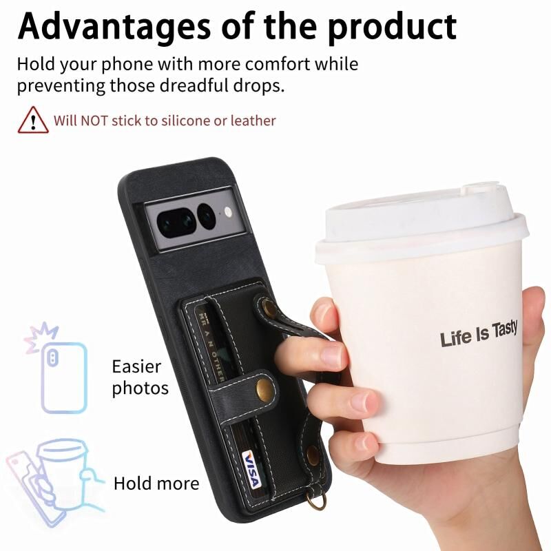Για το Google Pixel 7 Pro Retro Cross Wristband πορτοφόλι δερμάτινη πίσω θήκη τηλεφώνου (Μαύρο)