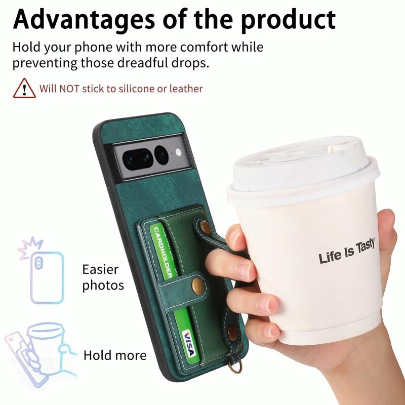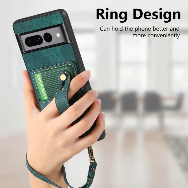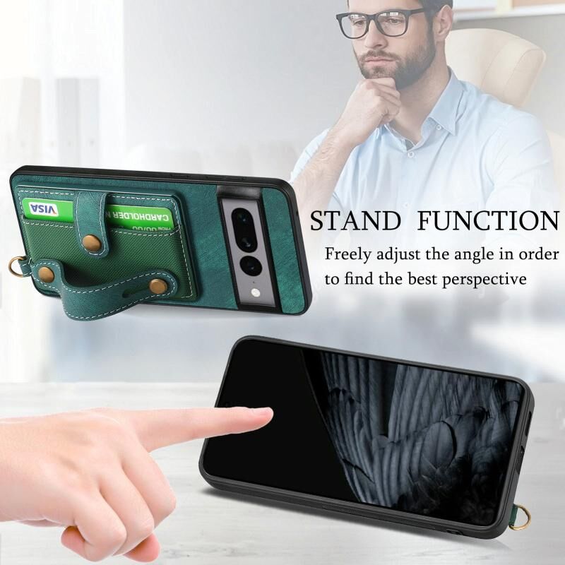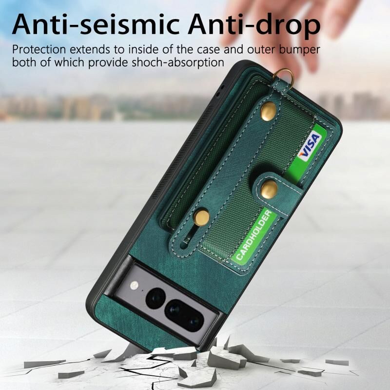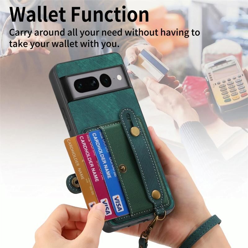 Για το Google Pixel 7 Pro Ρετρό σταυρό Wristband πορτοφόλι δέρμα πίσω υπόθεση τηλεφώνου (πράσινο)