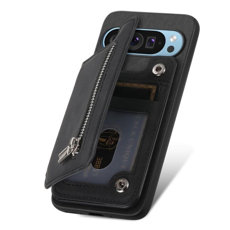 For Google Pixel 7 Pro Retro MagSafe Zipper Wallet Card Bag Back Phone Case(Black)