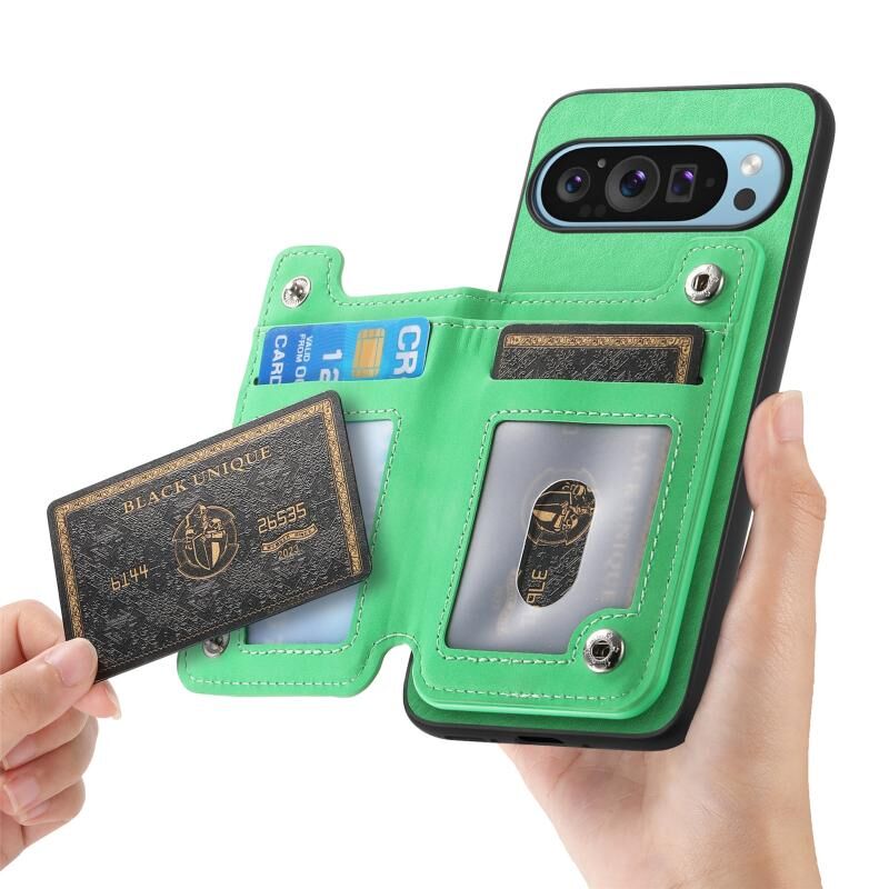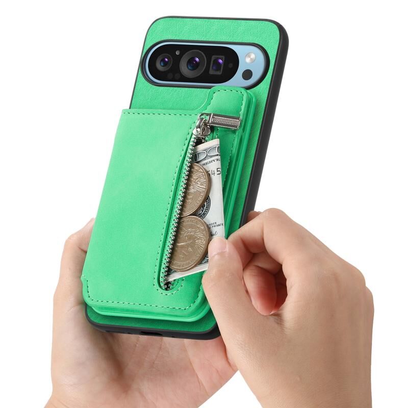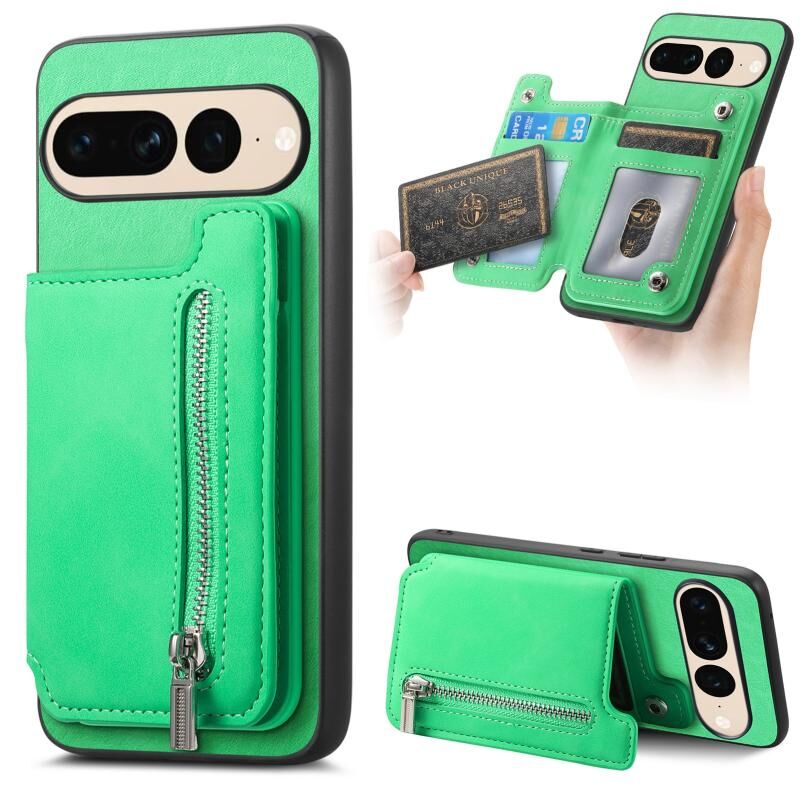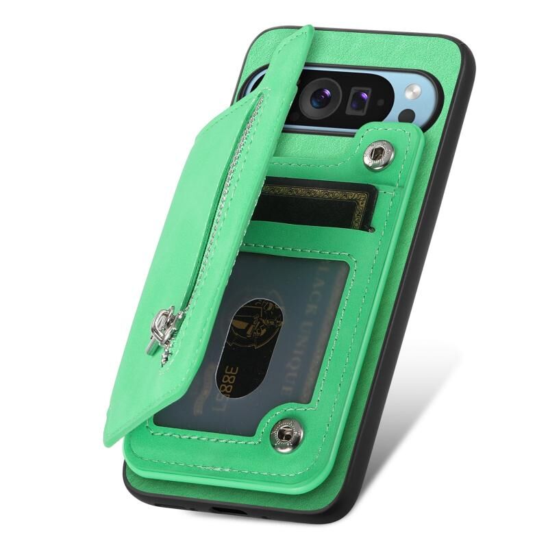 For Google Pixel 7 Pro Retro MagSafe Zipper Wallet Card Bag Back Phone Case(Green)