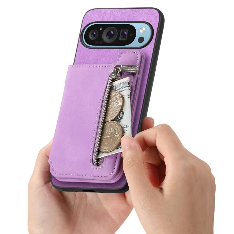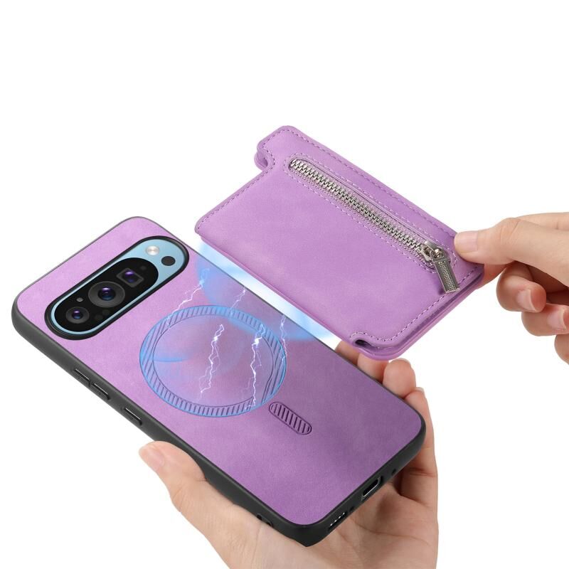 For Google Pixel 7 Pro Retro MagSafe Zipper Wallet Card Bag Back Phone Case(Purple)