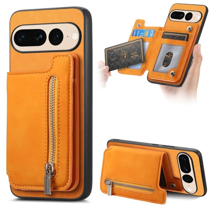 For Google Pixel 7 Pro Retro MagSafe Zipper Wallet Card Bag Back Phone Case(Yellow)