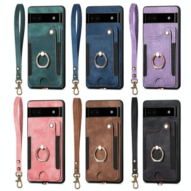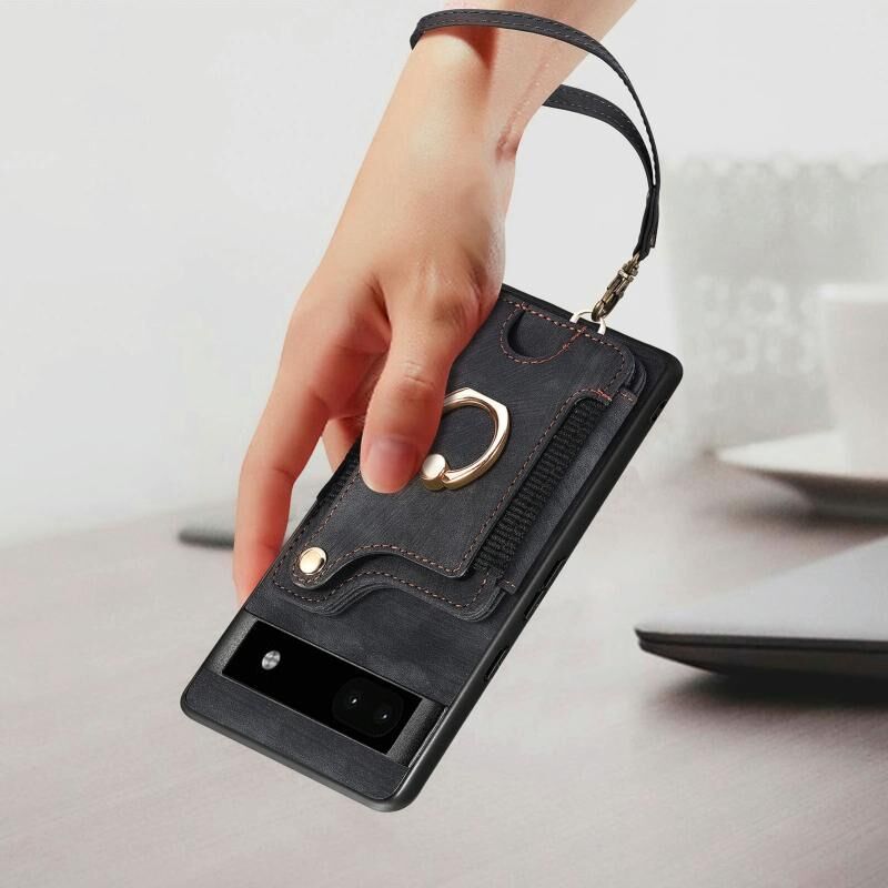 Για το Google Pixel 7 Pro Ρετρό δέρμα αίσθηση δαχτυλίδι πολυ-κάρτα RFID πορτοφόλι υπόθεση τηλεφώνου (Μαύρο)