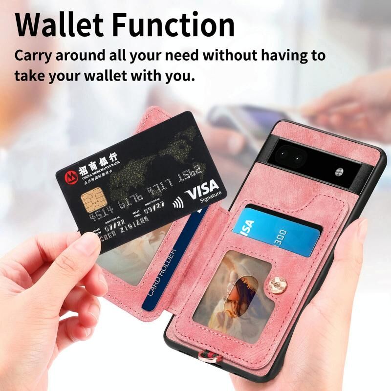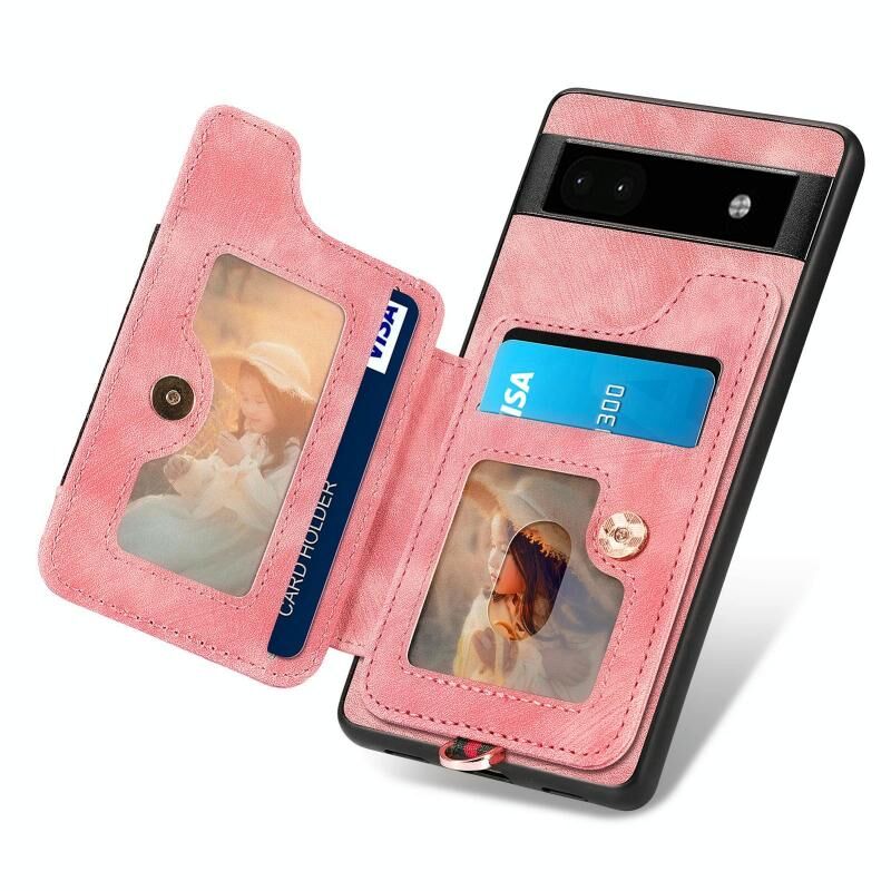 Για το Google Pixel 7 Pro Ρετρό δέρμα αίσθηση δαχτυλίδι πολυ-κάρτα RFID πορτοφόλι υπόθεση τηλεφώνου (ροζ)