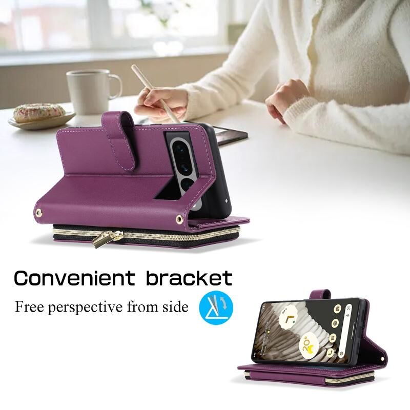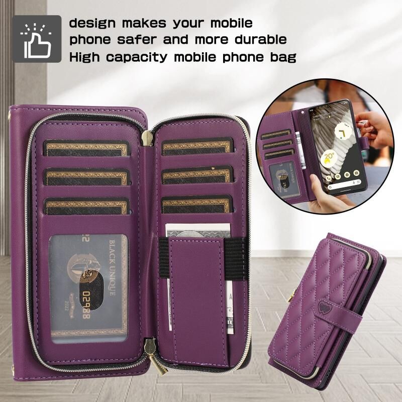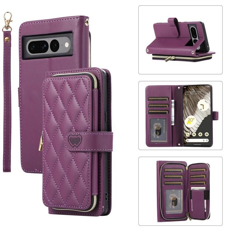 Για το Google Pixel 7 Pro Rhombic Full φερμουάρ πορτοφόλι δερμάτινη θήκη τηλεφώνου (Deep Purple)