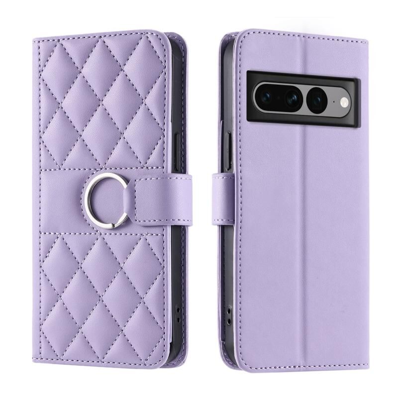 For Google Pixel 7 Pro Ring Buckle Rhombic Leather Phone Case(Purple)