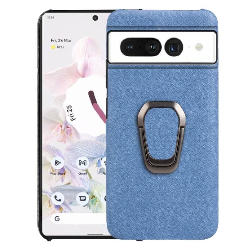 Για το Google Pixel 7 Pro Ring Holder Honeycomb PU δέρμα τηλέφωνο υπόθεση (ανοιχτό μπλε)