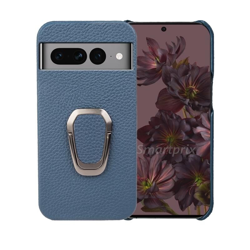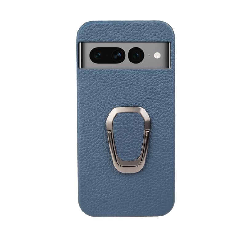 Θήκη τηλεφώνου από γνήσιο δέρμα με υφή λitchi για Google Pixel 7 Pro με δακτύλιο στήριξης (Μαύρο)