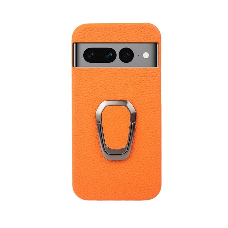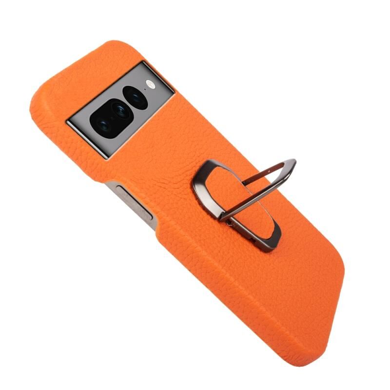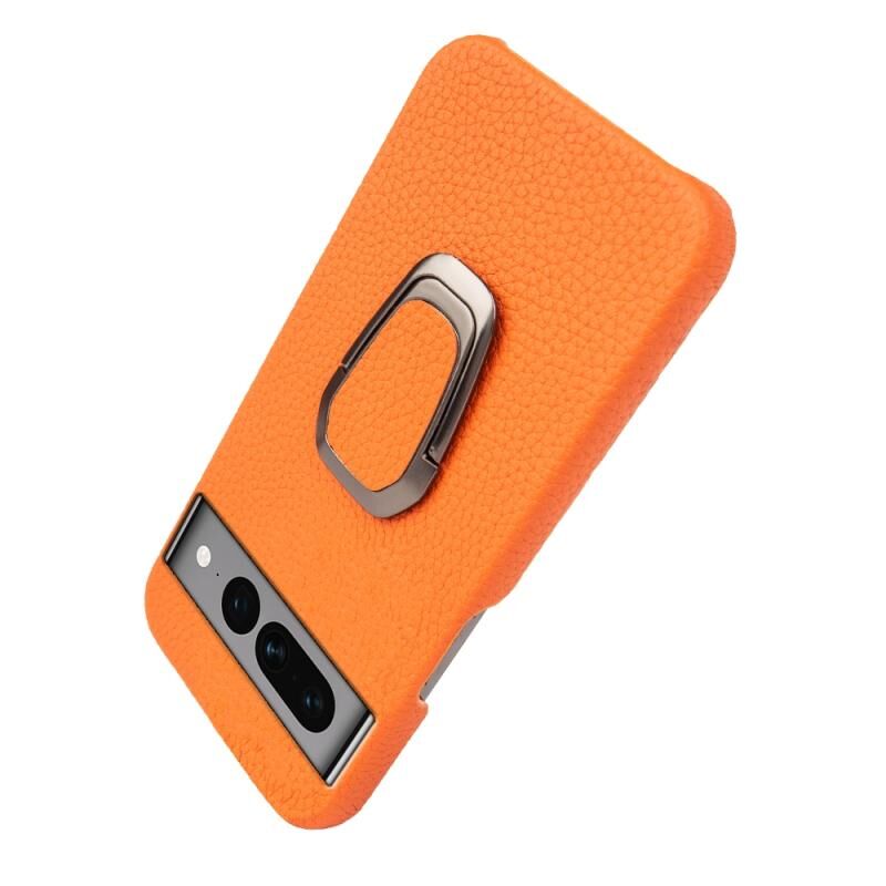 Θήκη τηλεφώνου από γνήσιο δέρμα με υφή λitchi για Google Pixel 7 Pro με δακτύλιο στήριξης (Μαύρο)