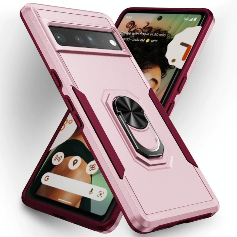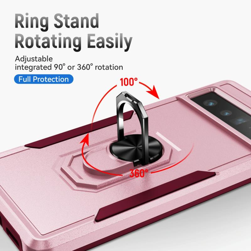 For Google Pixel 7 Pro Ring Kickstand Heavy Duty Shockproof Phone Case(Pink+Rose Red)