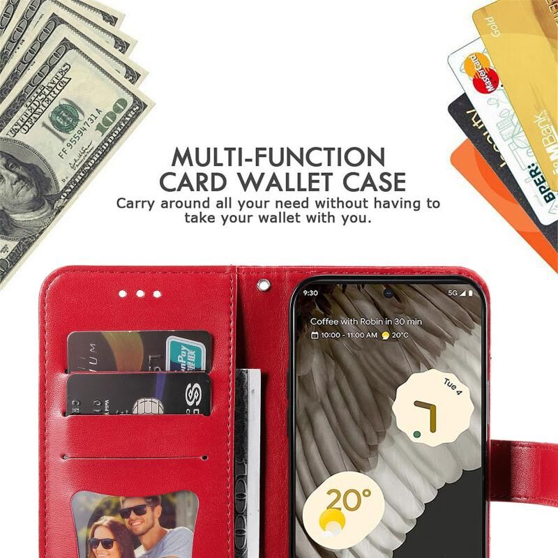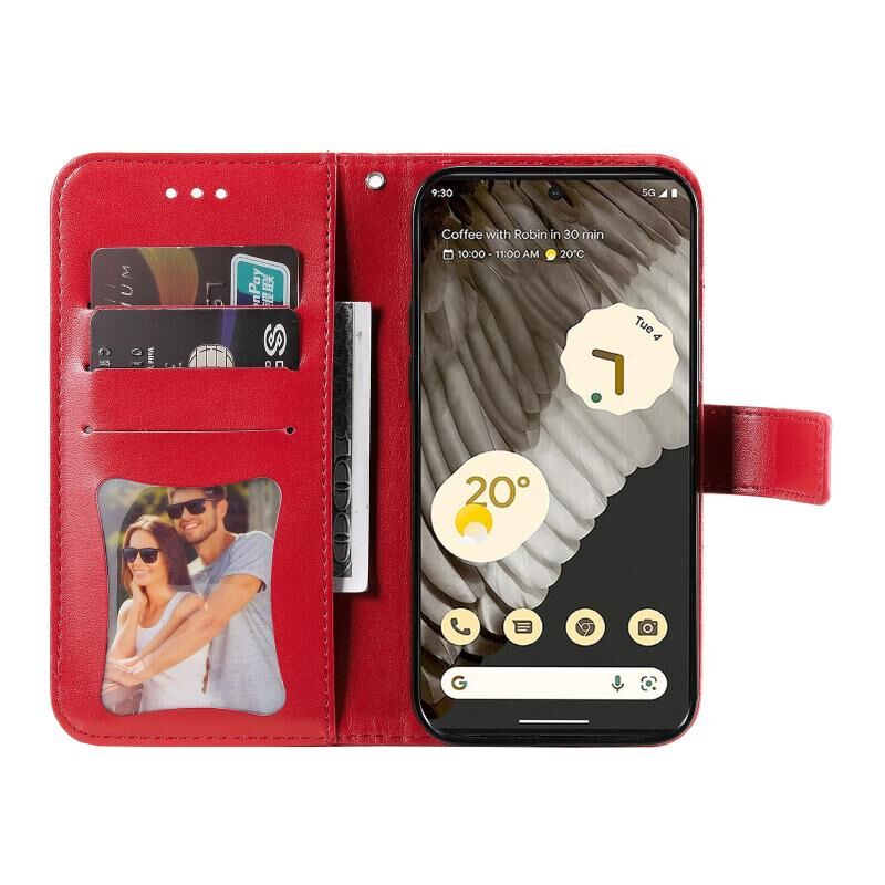 Θήκη τηλεφώνου από δέρμα με ανάγλυφα επτάφυλλα λουλούδια για Google Pixel 7 Pro (Κόκκινη)