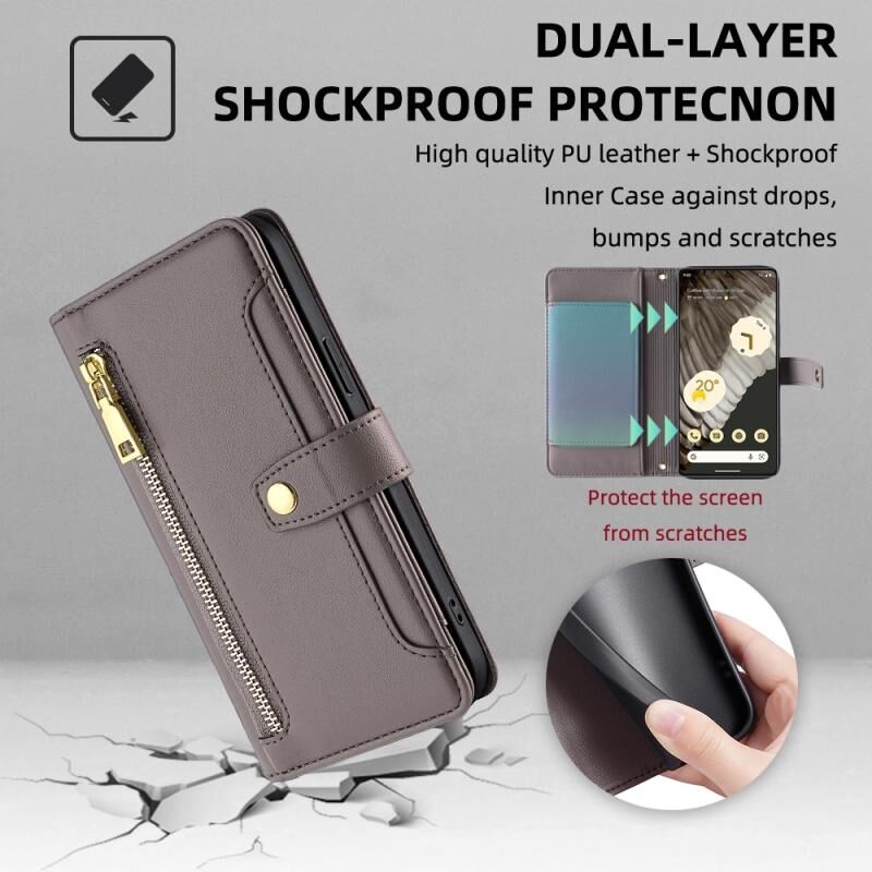 Θήκη τηλεφώνου από δέρμα με φερμουάρ και σχέδιο προβάτου για Google Pixel 7 Pro (Μαύρο)