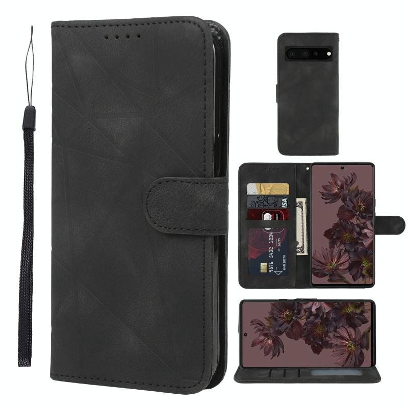 For Google Pixel 7 Pro Skin Feel Geometric Lines Leather Phone Case(Black)