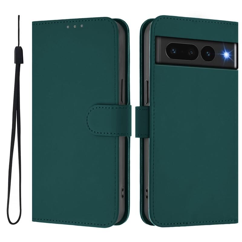 Για το Google Pixel 7 Pro Skin Feel Solid Color Δερμάτινη θήκη τηλεφώνου με κορδόνι (σκούρο πράσινο)