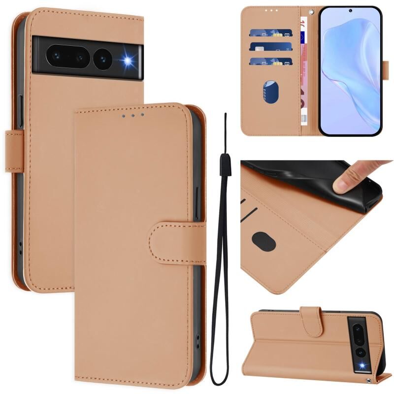 Για το Google Pixel 7 Pro Skin Feel Solid Color Δερμάτινη θήκη τηλεφώνου με κορδόνι (Nude)