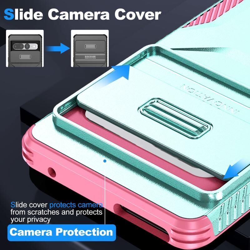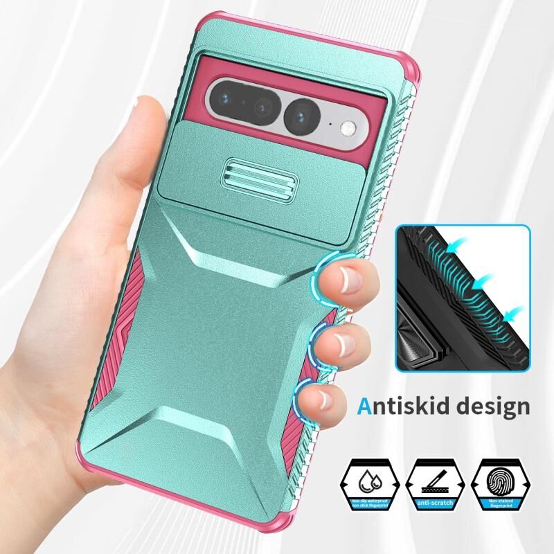 Για το Google Pixel 7 Pro Συρόμενη θήκη τηλεφώνου Camshield (γκρι, πράσινο + ροζ)