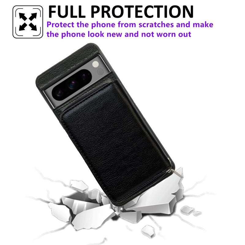 Για το Google Pixel 7 Pro Αμιγές χρώμα φερμουάρ 11-κάρτα Slots τσάντα υπόθεση τηλεφώνου με κορδόνι (μαύρο)