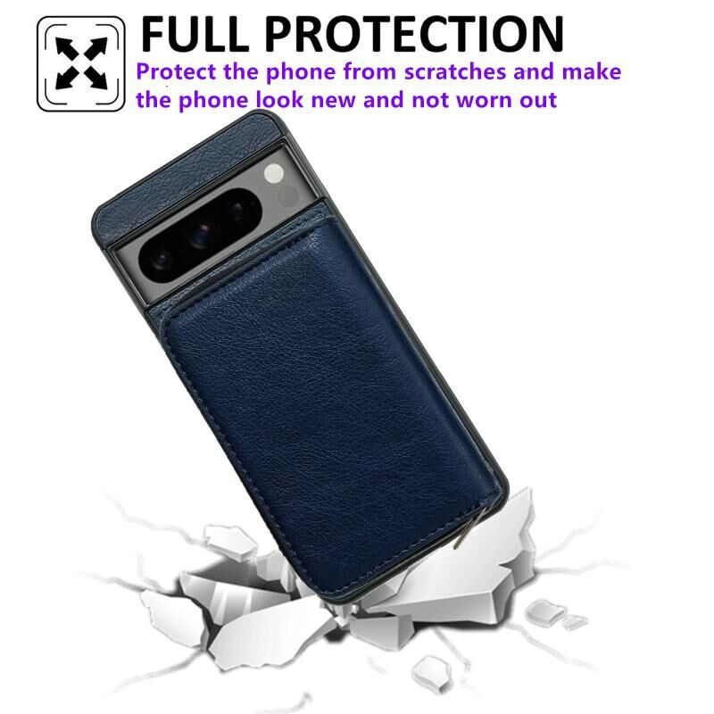 Για Google Pixel 7 Pro Αμιγές χρώμα φερμουάρ 11-κάρτα υποδοχές τσάντα υπόθεση τηλεφώνου με κορδόνι (μπλε)