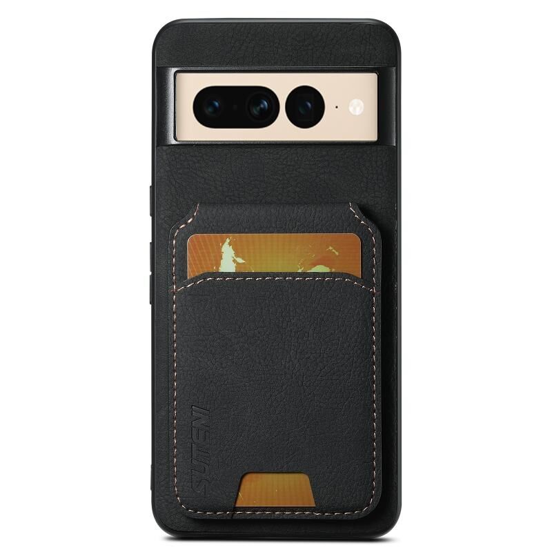 Θήκη κινητού τηλεφώνου Suteni H02 από δέρμα Litchi με κάρτες και βάση για Google Pixel 7 Pro (Μαύρο) (Suteni)