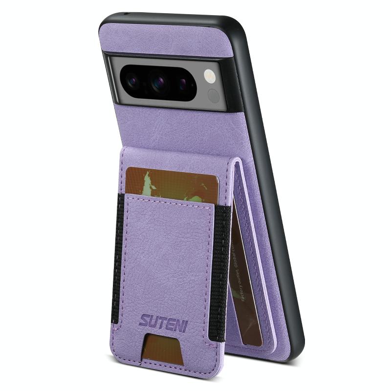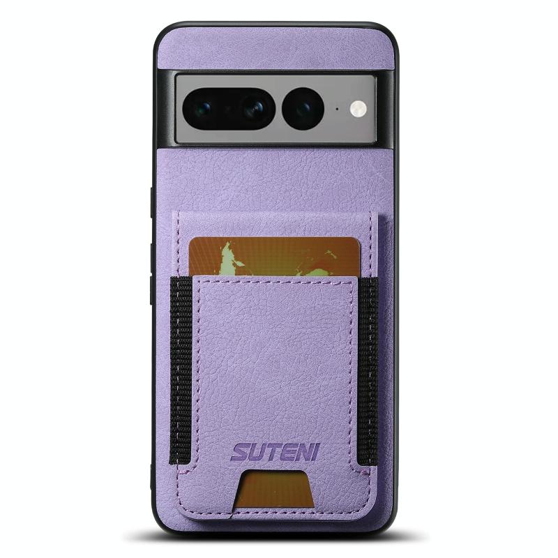 For Google Pixel 7 Pro Suteni H03 Litchi Leather Card Bag Stand Back Phone Case(Purple) (Suteni)