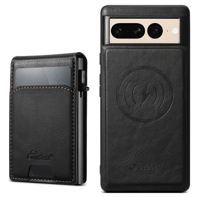 For Google Pixel 7 Pro Suteni H19 Oil Wax 2-in-1 MagSafe Removable Card Box Back Phone Case(Black) (Suteni)