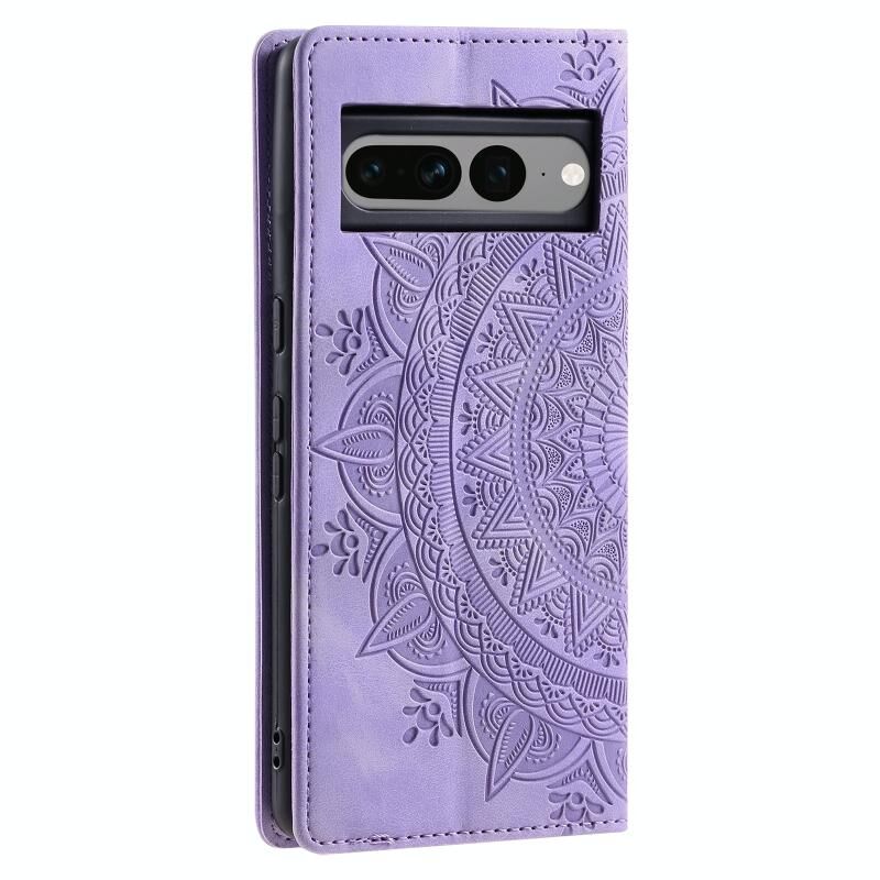 Για το Google Pixel 7 Pro Totem ανάγλυφη μαγνητική δερμάτινη θήκη τηλεφώνου (μωβ)