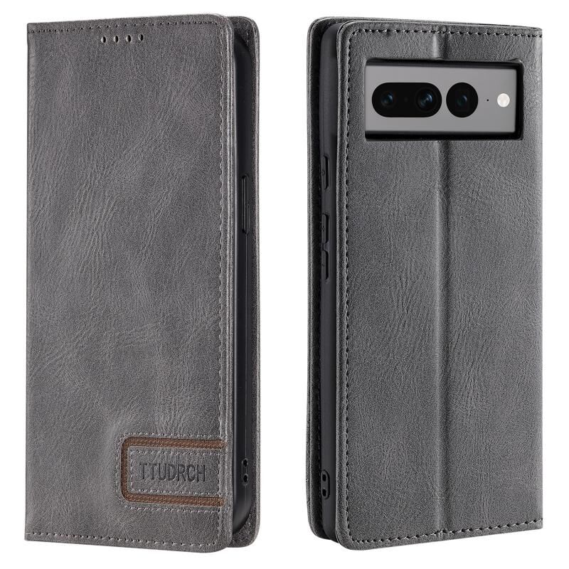 Θήκη τηλεφώνου από δέρμα με ανάγλυφη υφή retro και τεχνολογία RFID για Google Pixel 7 Pro TTUDRCH (Γκρι)
